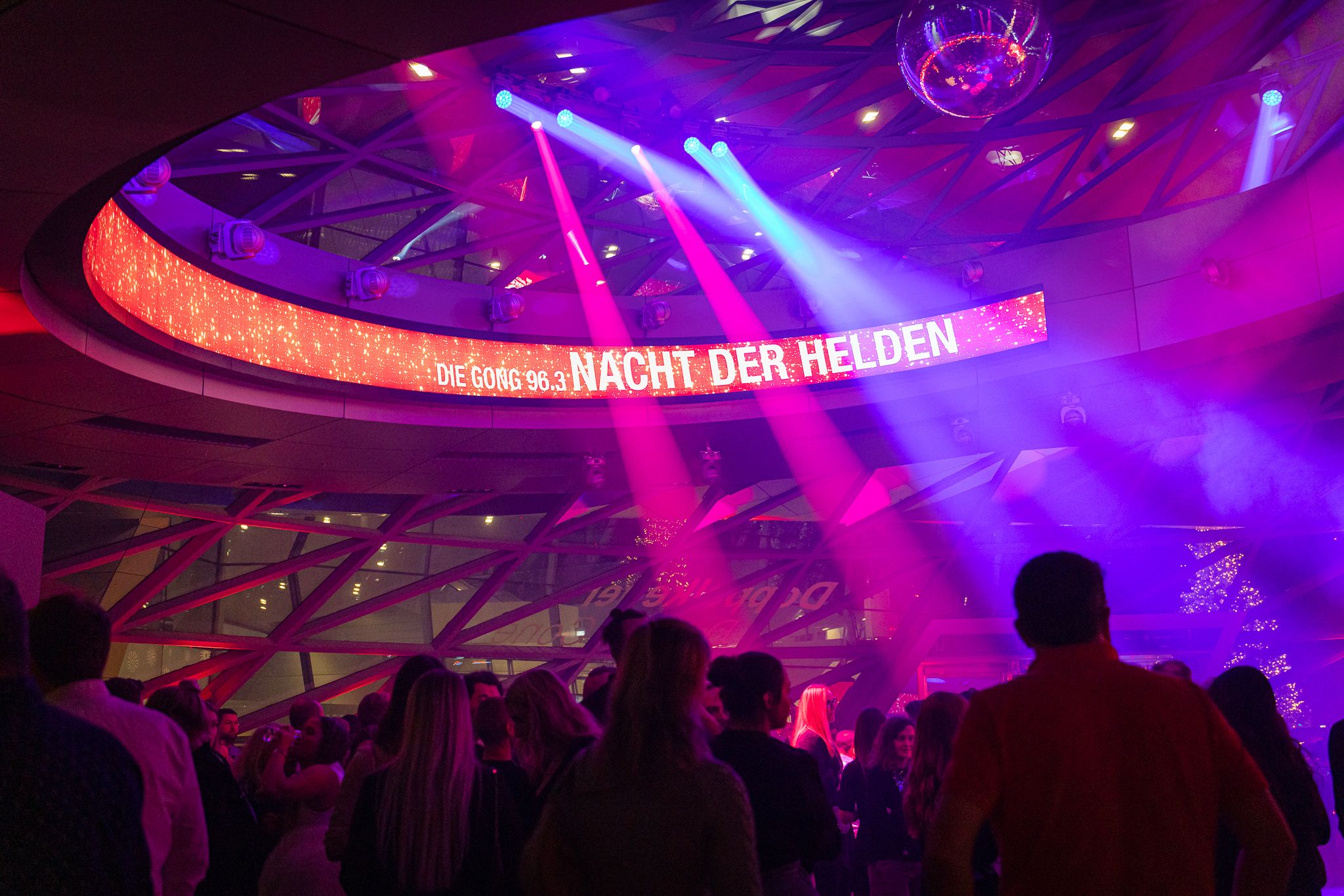 Seit Jahren verwandelt sich der Doppelkegel zum Jahresstart in eine außergewöhnliche Party-Area. Bei der Radio Gong 96.3 „Nacht der Helden“ werden alle gefeiert, die an Silvester im Einsatz waren. Mit kraftvollen DJ-Beats, einer imposanten 1,5 Meter großen Discokugel und einem glamourösen Ambiente zeigte die BMW Welt dieses Jahr erneut ihre Vielfalt als Eventlocation. Der Höhepunkt war die Mitternachts-Inszenierung: Ein spektakulärer Funkenregen, Konfetti-Shooter sowie eine beeindruckende Licht- und Videoshow sorgten für unvergessliches Jahreswechsel-Feeling.
